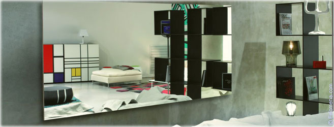 Интерьерное зеркало — это зеркало, предназначенное для украшения, и оно должно быть маленьким и изящным, как можно более вычурным. Плохо с точки зрения фен-шуй, сидеть долго напротив трюмо, зеркала которого отражают друг друга и напротив окна, которое отражается в зеркале.